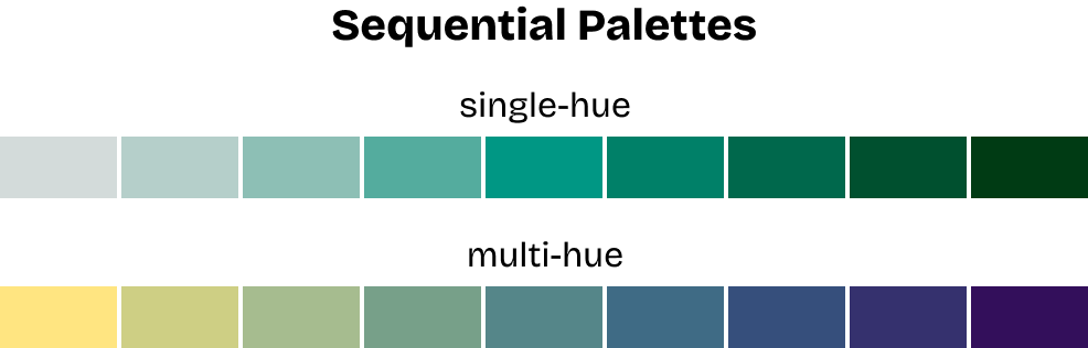The right palette helps reveal patterns and important details in your data, while a poor choice can obscure them. Leaving out some special cases for now, we can classify three main palette types:
